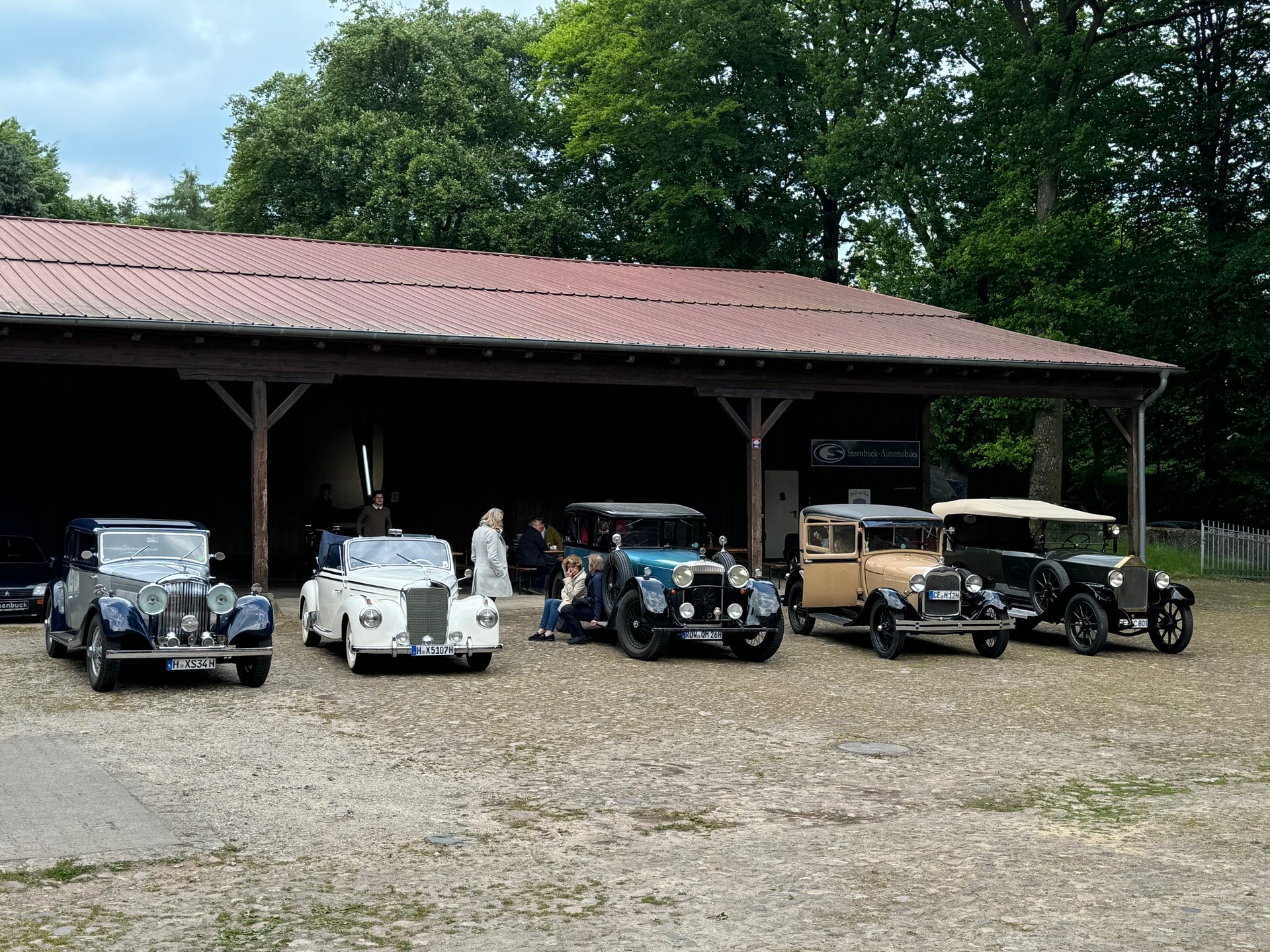 Am Nachmittag führte die Route weiter zum Oldtimerhändler Steenbrook in Lübberstedt. Dort wartete nicht nur Kaffee mit klassischem Butterkuchen auf die Teilnehmer, sondern auch eine beeindruckende Ausstellung von klassischen Fahrzeugen aller Baujahre. In entspannter Atmosphäre konnten die Teilnehmer nicht nur ihre eigenen Fahrzeuge begutachten, sondern auch mit dem SB Sachse und seiner Frau fachsimplen sowie in den ausgestellten Modellen probesitzen und sich inspirieren lassen. Für viele war dieser Stopp ein echtes Highlight – eine perfekte Mischung aus Genuss, Technik und Nostalgie.
