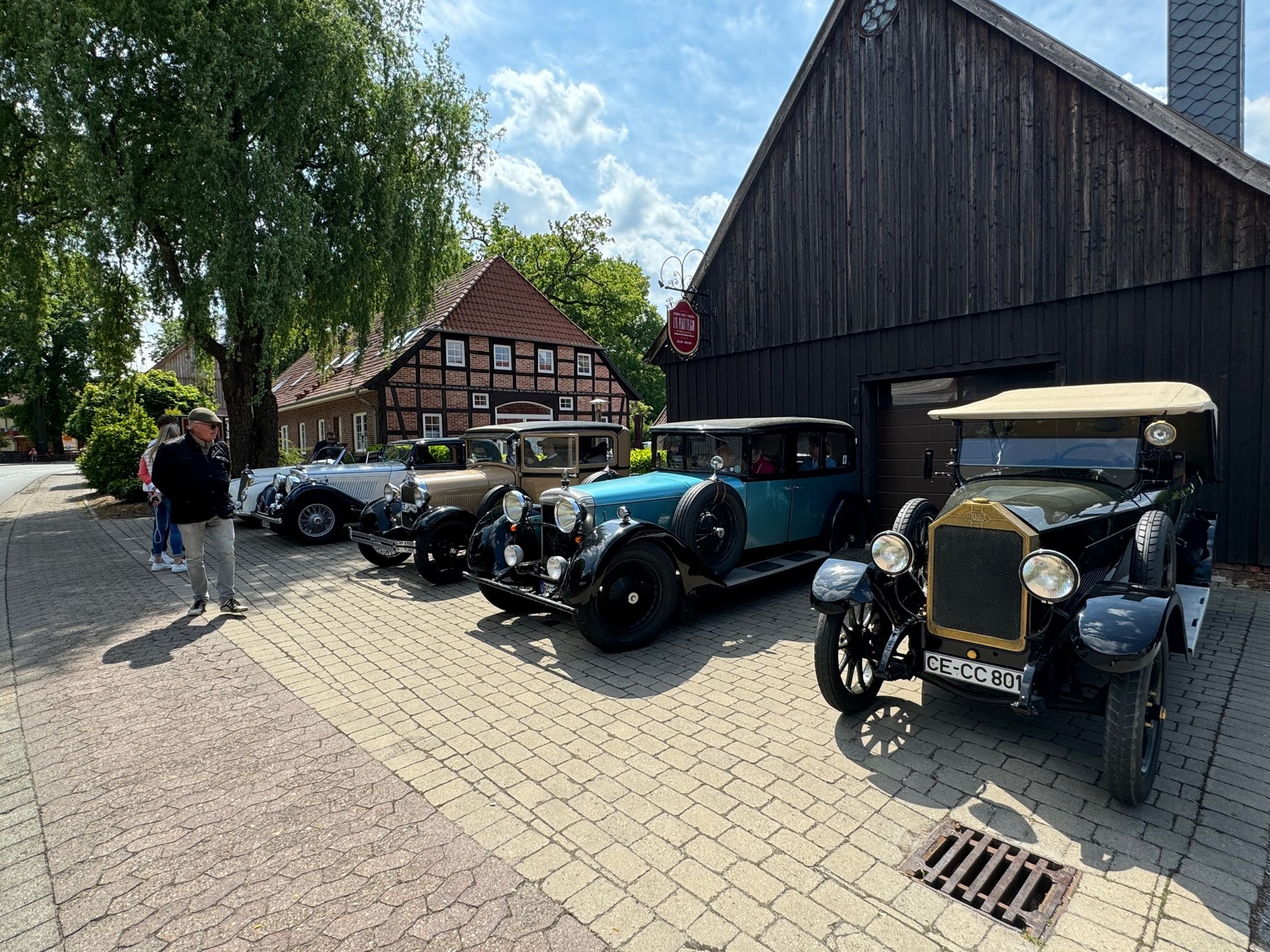 Nach einer abwechslungsreichen ersten Etappe, gestartet in Hanstedt vorbei an Erika und Heidschnucken Ställen ging es quer durch den Naturschutzpark Lüneburger Heide. Besonders authentisch wurde es mit dem kurzen Straßenabschnitt zwischen Hof Sudermühlen und der Gemeinde Egestorf auf dem die Vorkriegsfahrzeuge auf für die damalige Zeit typischem Kopfsteinpflaster unterwegs waren. Ein ganz besonderes Erlebnis.