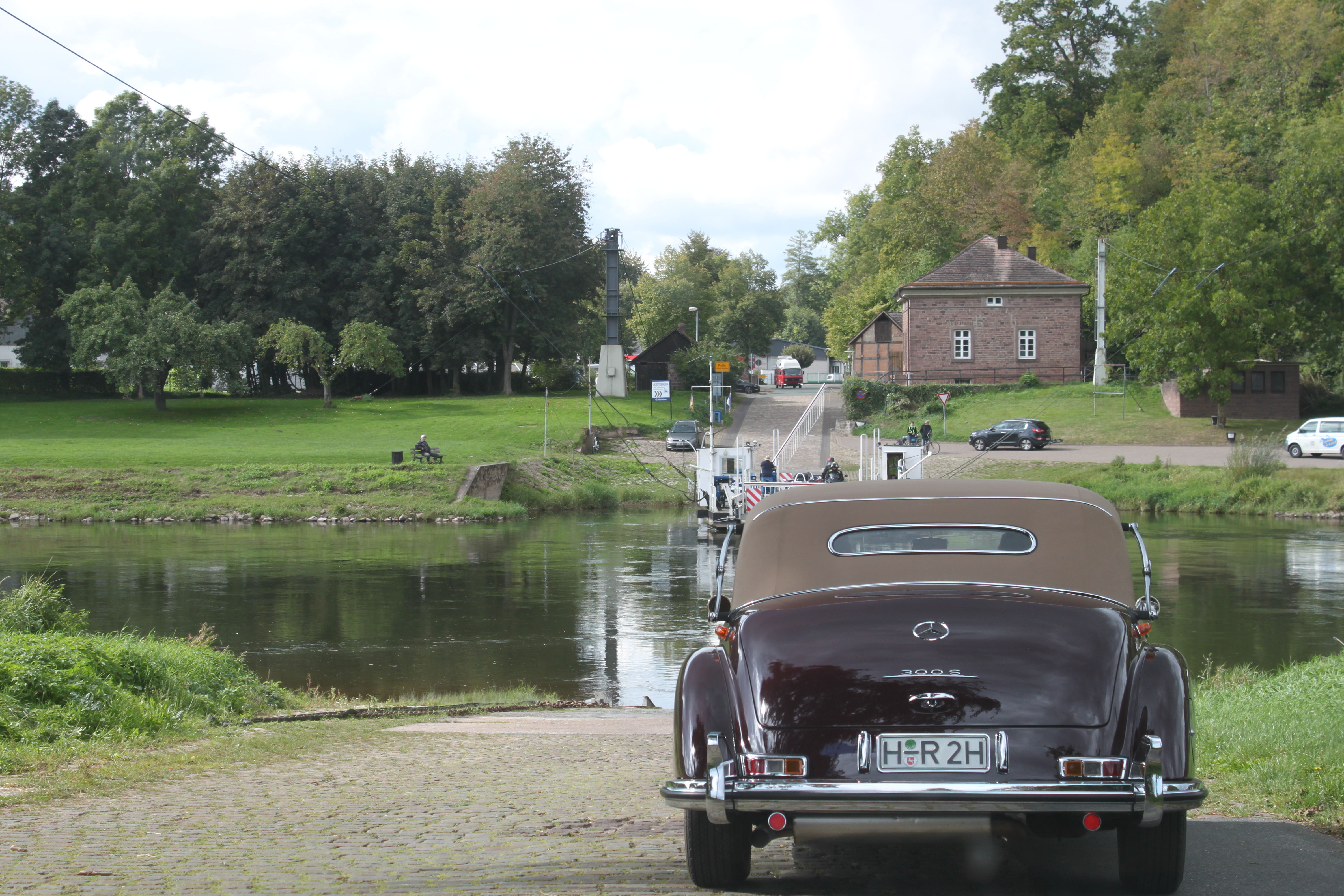Wir fuhren mit Blick auf die Weser, die Berge an der Weser oder kreuzten die Weser mit einer Fähre. Die Straßen mit ihren Steigungen, Kurven und Serpentinen erinnerten oft an Pässe in den Alpen was die Fahrtüchtigkeit der Historischen Fahrzeuge und der Insassen herausforderte.