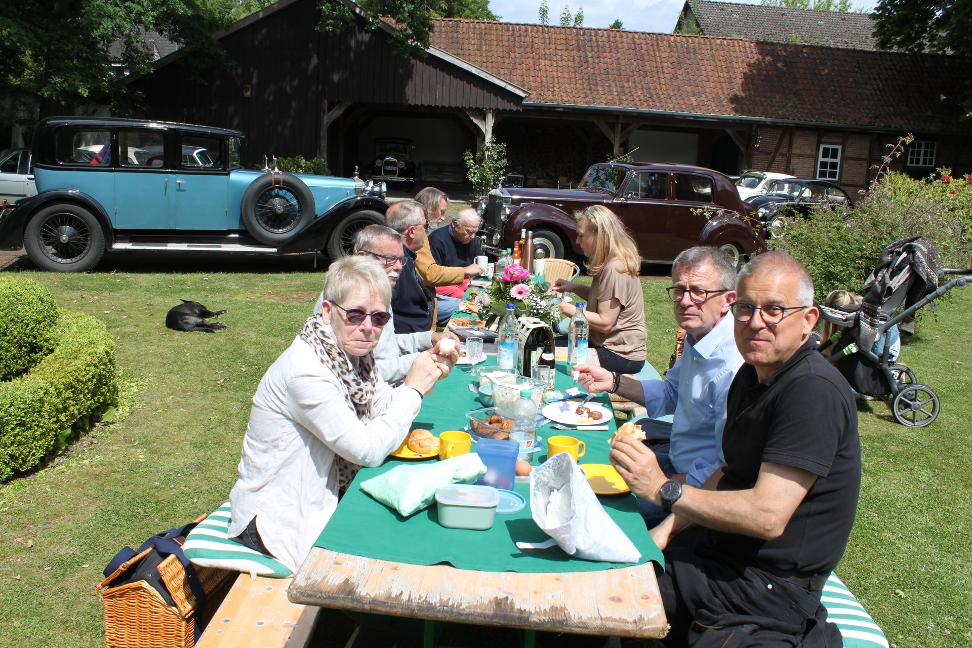 Es hat bereits seit vielen Jahren Tradition, dass sich die Mitgleider der Landesgruppe Niedersachsen an Himmelfahrt nichts vornehmen. Denn alle die möchten, fahren in die Südheide, zur Familie Hiestermann. Natürlich in alten Autos und mit im Gepäck: Stühle, einen Tisch, etwas zum Anstoßen und Kleinigkeiten fürs Picknick. Auf dem Grundstück der Familie entsteht auf der Rasenfläche innerhalb kurzer Zeit ein emsiges Treiben an Nestbau, für ein paar gemeinsame Stunden, in fröhlicher Stimmung. Dieses Event gehört zur festen Jahresplanung und wir danken an dieser Stelle im Besonderen Molly und Peter Hiestermann und der ganzen großen Familie!